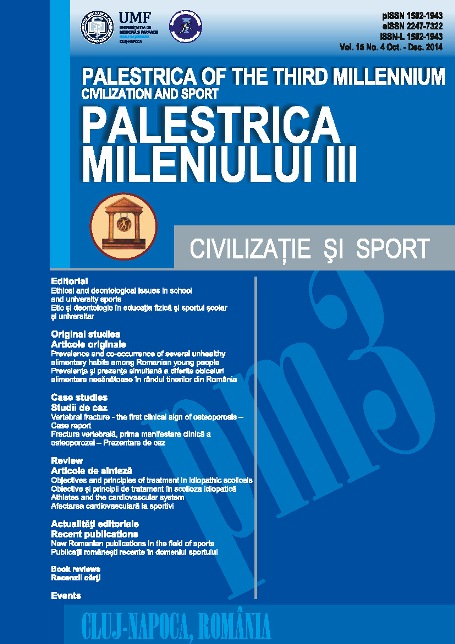 Palestrica Mileniului III Civilizaţie şi sport Vol. 15, no. 4, Octombrie-Decembrie 2014