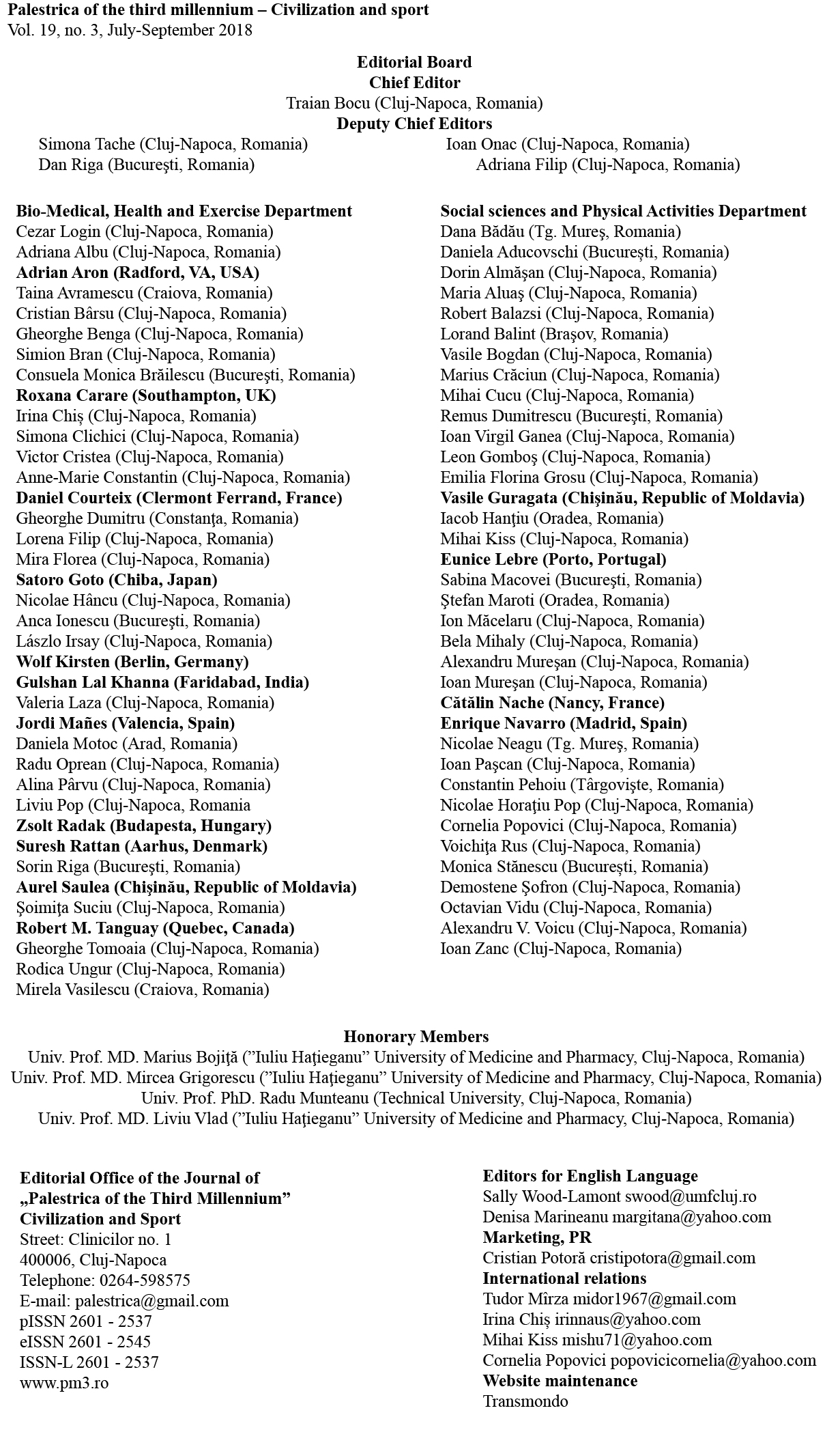 - Palestrica mileniului III Civilizaţie şi sport Vol. 19, no. 2, Aprilie-Iunie 2018